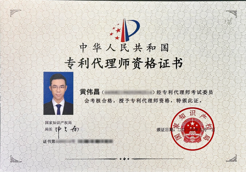 专利代理师资格考试作为法律和知识产权领域的专业认证,具有相当的难度。黄伟昌律师深耕知识产权领域多年,在商标侵权、著作权保护等业务中实战经验丰富。为攻克考试,他在办案之余刻苦钻研专利申请、侵权判定等难点,最终顺利通过考试,获得了国家专利代理师资格证书。