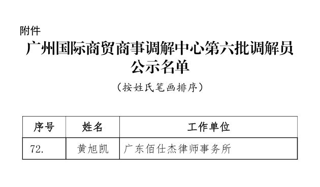 近日,广州市律师协会公布广州国际商贸商事调解中心第六批调解员名单,我所黄旭凯律师凭借扎实的专业功底与丰富的实务经验成功获聘。这是业界对其专业素养与调解能力的高度肯定。